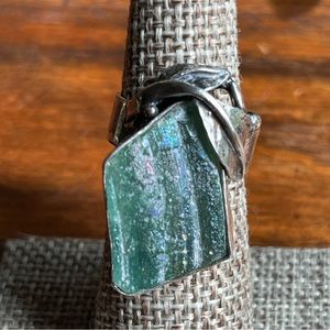 Handcrafted sterling silver with a nature motif with green agate! Beautiful! ❤️