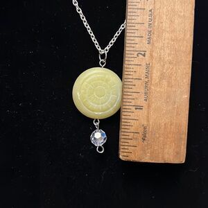 Handcrafted yellow pendant on a 21 inch silver tone chain