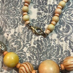 Elevate your style with this handcrafted beaded necklace. Featuring a blend of cream, tan, and brown beads, this piece adds a touch of elegance to any outfit. Perfect for any occasion. Approximately 12”. G173