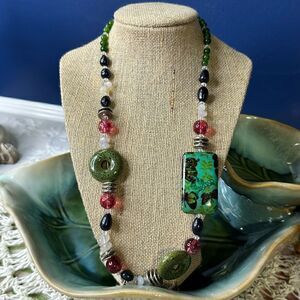 Handcrafted Beautiful Artisan Glass Beaded Necklace 20”