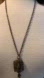 This Semi Precious stone known to be Jasper is wrapped in a Brass Filigree with several hanging embellishments and beads.