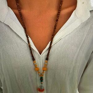 * Luxurious Materials: Crafted with a stunning assortment of wood and vibrant beads, this necklace radiates natural beauty.