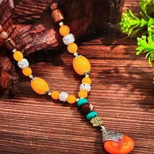* Unique Pendant: The eye-catching orange pendant serves as a striking focal point, making it a true standout piece.