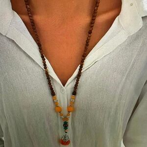 * Luxurious Materials: Crafted with a stunning assortment of wood and vibrant beads, this necklace radiates natural beauty.
