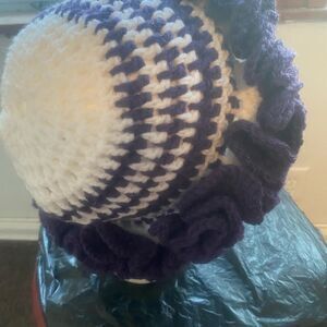 Handcrafted Crochet Purple/White ruffle bucket hat