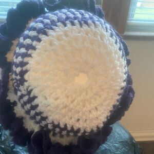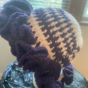 Handcrafted Crochet Purple/White ruffle bucket hat (acrylic yarn)