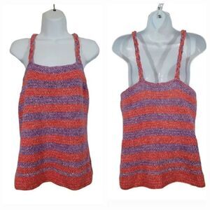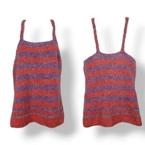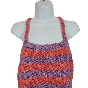 Handcrafted Crochet Knit Purple and Coral Sweater Tank Size Medium
