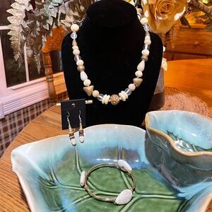 Handcrafted Ivory Necklace Earrings & Bracelet