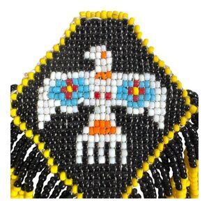 Handcrafted Native American Beaded Medallion Large Thunderbird Design & Fringe