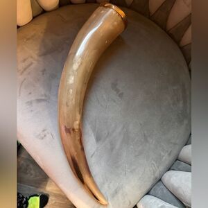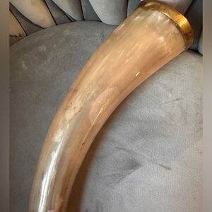 The handmade natural Viking beer horn is a striking and authentic piece that captures the spirit of ancient Viking culture and medieval times. Made from genuine material, it is unique with its natural color variations, making each horn unique. This 16-inch drinking horn is adorned with ornate brass details, adding a touch of elegance and historic charm. It is a touch of decoration for your home, office or groups.