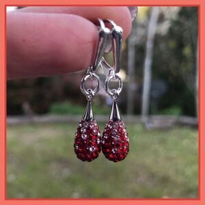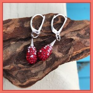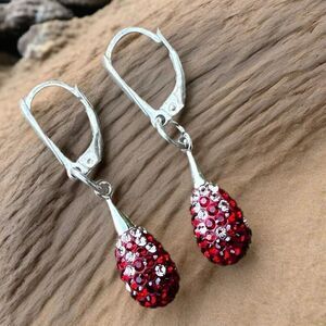 This listing is for a beautiful pair of Siam red and clear crystal pave earrings in a sterling silver leverback earring setting. 20mm drop length. My husband and I make jewelry using genuine Swarovski crystals. All items are new and much prettier in person than pictures. Proceeds used to help our 5-yr-old granddaughter Lila May in her fight against cancer, but she lost her battle. Now she is dancing with the angels. A percentage of profit will go to Neuroblastoma charities. 211