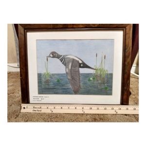 I created this piece myself using only Prismacolor colored pencils. It was entered in the National Duck Stamp competition, which offered a college scholarship to the winner. Though I did not win, I was awarded honorable mention. This is a one-of-a-kind original piece, and while I did make photocopies, I never redrew this, and it is thus far the only duck I’ve ever drawn.