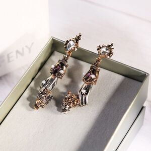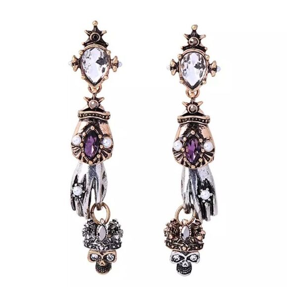 Felling magic.. Absolutely stunning earrings! Very unique and special! Silver hand, gold bracelet with purple gem, shining ring and the scull with the crown on your ear😃!!! I guarantee everyone will ask you where did you get and it will be our secret shhh...