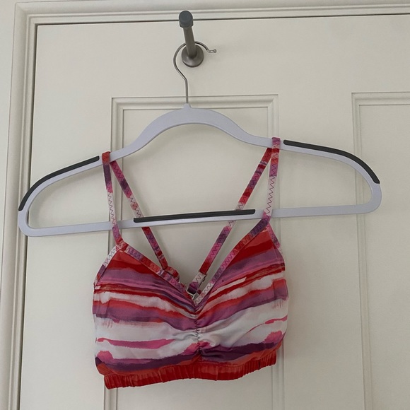 Very gently used adjustable bra with pads. The Handful Adjustable Bra is a washable soft, versatile, wear-everywhere chafe-free moisture-wicking bra featuring pockets, removable pads, and straps that can be worn in three ways. It is the original do-it-all, all-day-long adjustable bra!