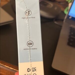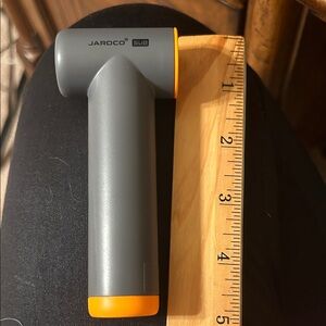 Compact handheld fan in charcoal gray and orange. Includes USB charging cable. These little fans work great. This one is mine for display. You will receive one new in package.