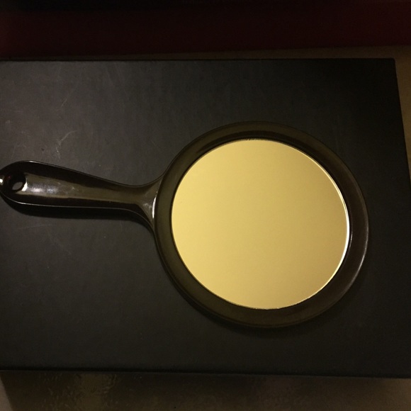Small handheld mirror. Good for applying makeup, eyebrow tweezing, anything that requires close up view. In great condition. No breaks or cracks. Plastic is very dark red color.