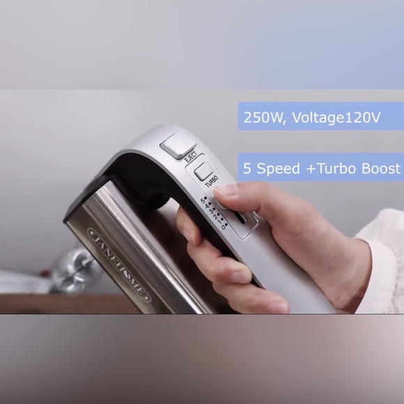 Electric 250W 5-Speed Hand Mixer with Turbo Button - Eject Button & 4 Stainless Steel Attachements 2 Beaters, 2 Dough
