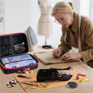 🧿【Product Advantages】 This elegant storage case neatly organizes 109 premium sewing accessories. The handheld sewing machine allows you to tackle simple stitching tasks and DIY projects with ease. Meanwhile, the included assortment of needles, threads, large and small scissors, and other tools enables precise repairs, making this a perfect sewing kit that meets nearly all your household mending needs.