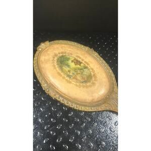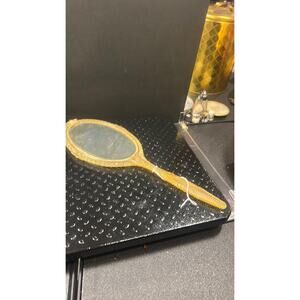 Discover the enchanting charm of this exquisite handheld vanity mirror! Perfect for adding a touch of vintage elegance to your dressing table or bathroom. This lovely piece features a beautifully detailed French Provencial design, with a romantic courting couple depicted on the back, evoking a timeless sense of romance and artistry. It truly reminds one of the magical mirrors from classic tales, much like the one seen in Beauty and the Beast. Crafted with care, this mirror is not only a functional accessory for your daily beauty routine but also a captivating decorative item. Its classic aesthetic makes it a wonderful accent piece for any home decor, whether you're going for a shabby chic, antique, or fairy-tale inspired theme. It's in excellent condition, ready to bring a touch of old-world charm and beauty into your life. Don't miss out on owning this unique and delightful treasure!