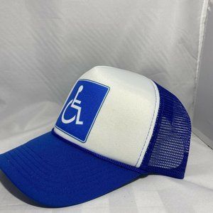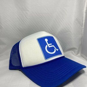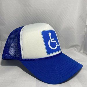 Brand New adults one size fits most, Handicap Retro Trucker Hat with adjustable closure in the rear. Foam Hat with poly mesh back.