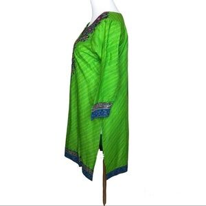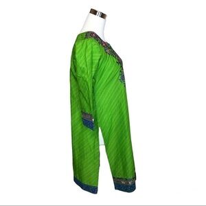 Handicraft Garment Kurta Size 40 Green Sequins Embroidered Floral India Colorful