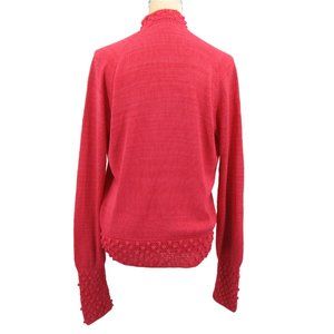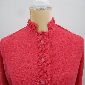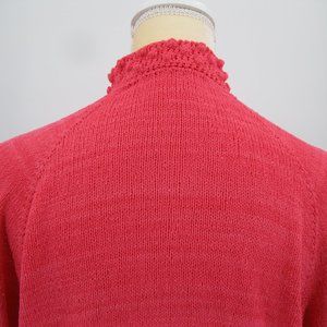 Handknit Cardigan Raised Popcorn Design Trim Bright Rose Womens Button Up L / XL