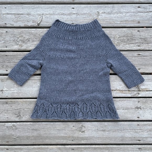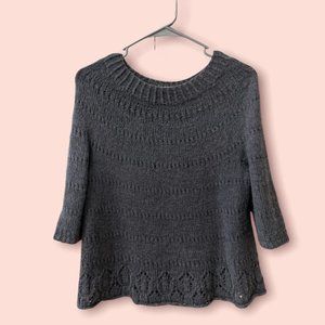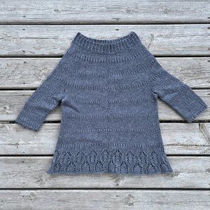 Handknit Cedar Pullover by Joji Locatelli Gray Lace Sweater Alpaca Fiber Small