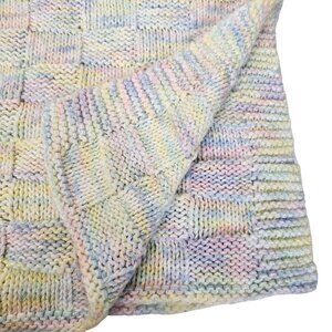 Handknit Crochet Baby Blanket Pastel Colors 46"x 30" Nursery Crib Clean Unisex