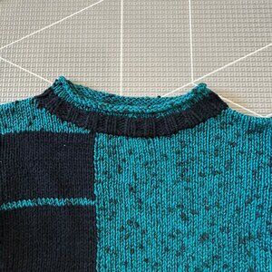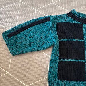 Handknit Oversized Toddler Sweater with Teal and Black Geometric Pattern