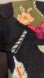 Vintage Butterflies and flowers beaded cardigan, handknitted, cotton&wool blend, floral theme, multi color on a black and mossy green background.