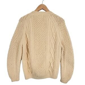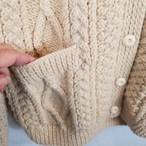 Handknit Women's Cable Knit Fisherman Cardigan Sweater Cream Size Medium