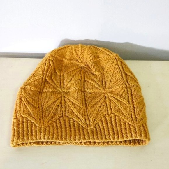 Hand-knit stocking hat - goldenrod color - adult one size. Never worn, no holes or loose threading. Smoke-free home.