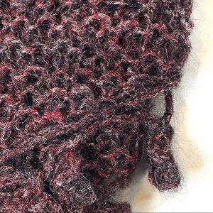 Hand knit burgundy and gray mohair triangle scarf size 78” X 23”