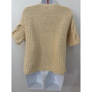 Handknits By Eastwinds Sweater Cardigan Yellow Short Sleeve Vintage Cottage M
