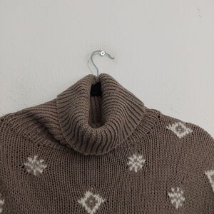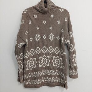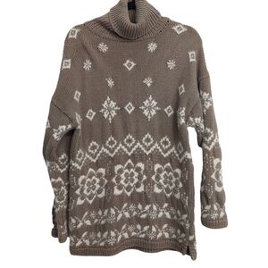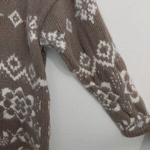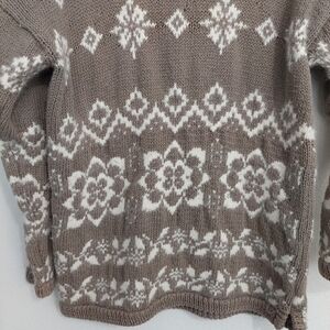 Handknitted C. Internationale Express Tunic Sweater Sz M Taupe Snowflakes Heavy.