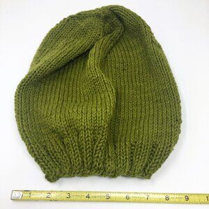 - Handknitted hat in a rich avocado, and/or olive green color, perfect for the winter months or even spring and fall