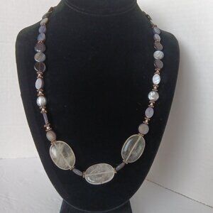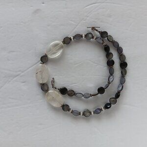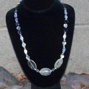 This beautiful hand crafted necklace is made from a fabulous fusion of clear polished agate stones and marbled gray and black beads in both oval and round disc shapes. Necklace is accented with sterling plated and clear beads. Necklace has toggle closure and is 23 inches long. Reasonable offers gladly accepted. *ALL ITEMS FROM PET FRIENDLY/SMOKE FREE ENVIRONMENT.*