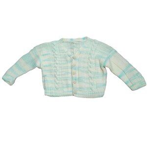 Handmade 0–6M Cable Knit Baby Cardigan Sweater Pastel Green Yellow White Vintage