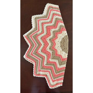 Handmade 12 Point Crochet Knit Star Baby Blanket Afghan Pink Brown Striped