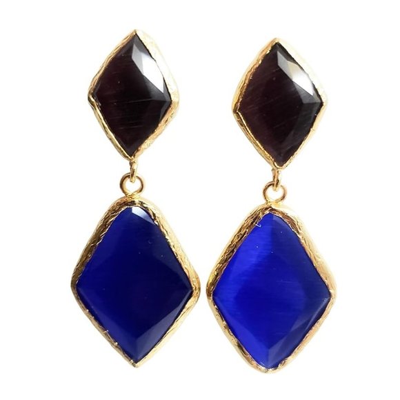 Handmade 14K Gold Plated Women's Dangle Earrings with Color Stones
