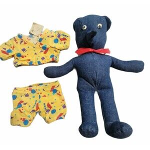 Vintage Handmade 17" Denim Teddy Bear Plush Stuffed Animal Googly Eyes Lovely with handmade outfit. Good pre-owned condition. Has a tag Made by Reba Thompson, Kingston OK. Measures approx 17" flat, 13" sitting. Stuffed firm. Has a unusual nose. Please see photos. Questions welcomed anytime.Thank you for supporting our small business. Have a great day.