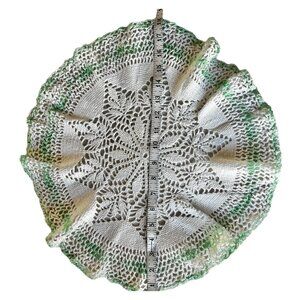 Handmade 18" Green White Crochet Doily Granny Core Cotton Cottage French Country