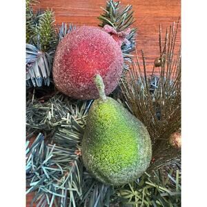 Handmade 19” Wreath: Pears, Apples, Fruit, Gold Baubles Wire Back