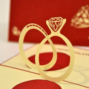 Handmade 3D Pop Up Diamond Ring Congratulations Propose Marriage Card Red