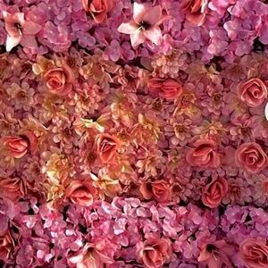 3D Pink, Yellow, and Coral flower wall backdrop. Adorned with Hydrangeas, Lillies, Zannias, Queen Ann Roses. Perfect for weddings or Bridal Showers. Or hanging for decor. Measuring 42x72 on heavy duty double lined fabric to prevent sun flare when taking photos. Can be rolled.
