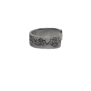 Handmade 8 hand stamped boho mandala hypoallergenic adjustable cuff ring