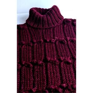 Handmade 80' Vintage burgundyBobble turtleneck Bust 36" CBack 24"Rare Quality rare