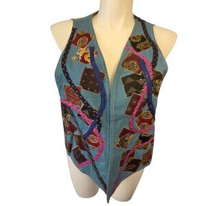 One-of-a-kind handmade reversible vest, likely dating to the late 1980s–1990s, with incredible detail and craftsmanship. Sized to fit plus (XL–2X).