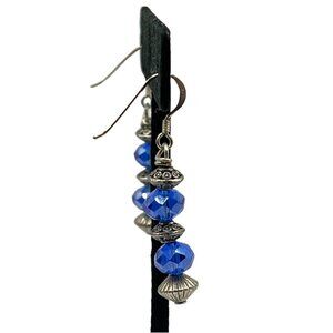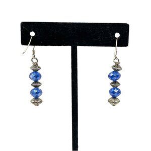 Handmade 925 Sterling Silver Hook Bead Drop Earrings Blue Saphire Glass Crystal