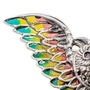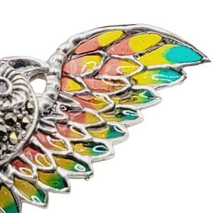 Handmade 925 Sterling Silver Plique Enamel Ruby Marcasite Brooch Owl in Flight